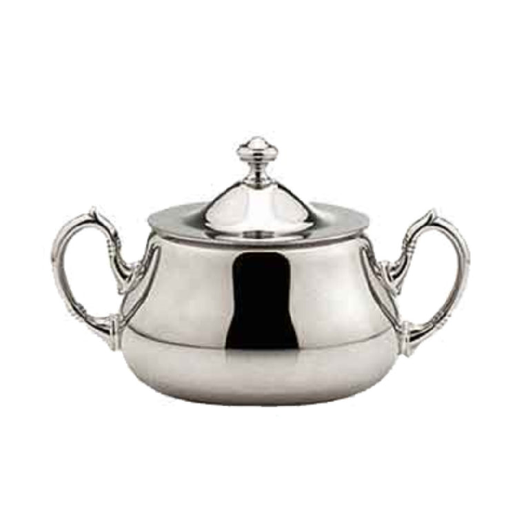Bauscher Hepp, 13.4604.0250, Sugar bowl, 9 oz. (0.25 liter), with lid, double handled, 18/10 stainless steel, silver plate finish, Tradition by Hepp (Packed By: 1 Each)