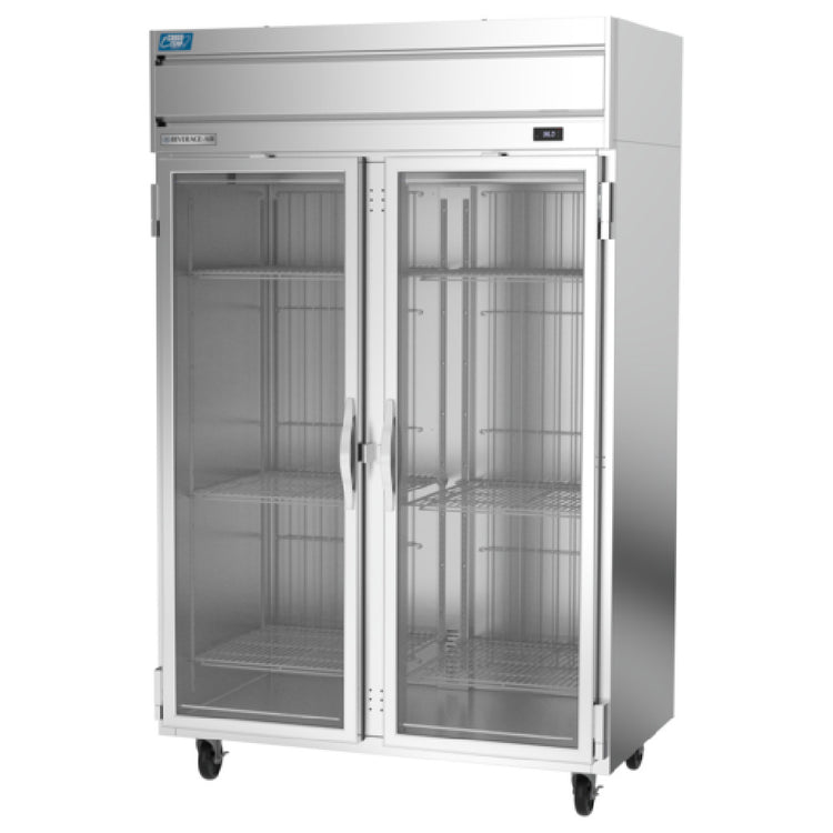 The Beverage Air CT2HC-1G Cross Temp® Convertible Refrigerator/Freezer Reach-in Two-section is a versatile and efficient solution for varied refrigeration needs, suitable for different segment markets within the foodservice industry. This unit offers a generous 45.2 cu. ft. capacity, housed within a two-section design featuring top-mounted, self-contained refrigeration. Its adaptability is enhanced by the Cross Temp® technology, allowing seamless conversion between refrigerator and freezer modes to suit diverse operational requirements. Equipped with two hinged glass doors and six shelves, the CT2HC-1G ensures easy visibility and organization of stored items. The electronic control system, coupled with a digital display, provides precise temperature management, while the adaptive defrost function optimizes performance across environments. The unit’s interior boasts durable aluminum construction, complemented by a stainless-steel front and continuous coil-coated sides for a sleek appearance. It features energy-efficient LED interior lighting and employs a variable speed compressor with an expansion valve, utilizing eco-friendly R290 Hydrocarbon refrigerant to minimize environmental impact. Powered by dual 4/5 HP motors, the CT2HC-1G is cULus, UL EPH Classified, and UL-Sanitation certified, ensuring compliance with high safety standards. Designed and manufactured in the USA, this refrigerator/freezer is an essential asset for maintaining food quality and safety in any professional kitchen.