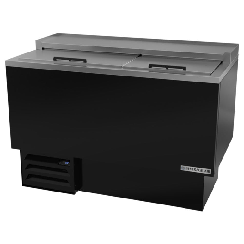 The Beverage Air GF48HC-B Glass Froster Underbar Model 48"W is a sophisticated solution designed for efficient cooling needs in commercial settings. This model stands at 48 inches in width and 33-5/8 inches in height, offering a substantial capacity of 9.65 cubic feet. Engineered with a top opening mechanism, it includes two sliding door lids for easy access. Inside, the unit is equipped with four shelves, two bottom racks, and two shelf ledges, each featuring three mounting points for versatile storage configurations. Operating at an impressive 0°F, this glass froster ensures optimal chilling performance. It features adaptive defrost technology, enhancing the cooling efficiency and maintaining a consistent temperature. The exterior is constructed from black-painted steel, while the interior boasts galvanized steel for durability. A stainless steel top adds to its sleek design. This unit runs on a self-contained refrigeration system, powered by a 1/2 HP motor. The Beverage Air GF48HC-B is certified by cULus, UL EPH Classified, and UL-Sanitation, ensuring compliance with industry standards. Manufactured in the USA, this glass froster is ideal for bars, restaurants, and any establishment requiring reliable and efficient glass chilling solutions.