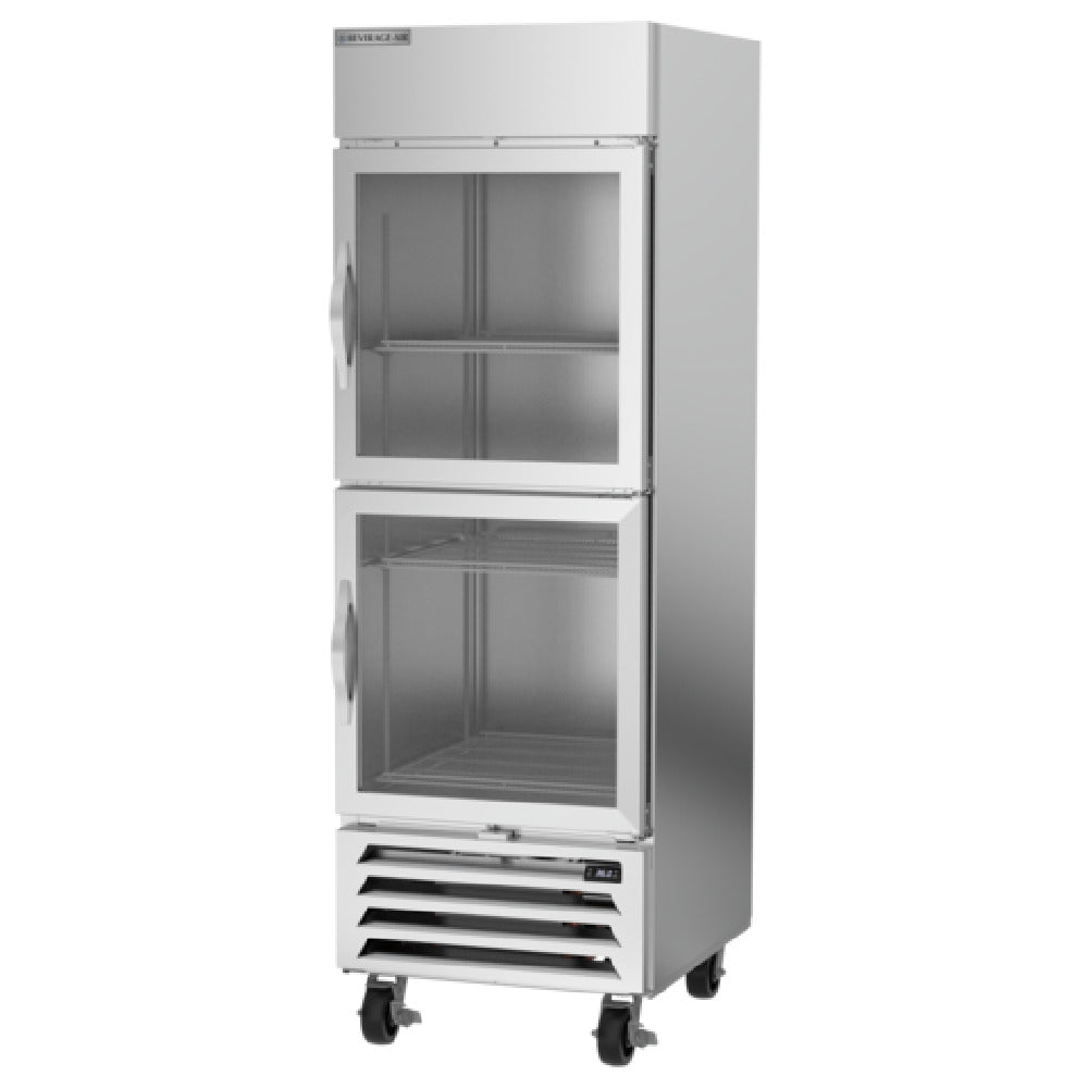 The Beverage Air HBR23HC-1-HG Horizon Series Refrigerator is a high-quality, reach-in, one-section unit engineered for diverse refrigeration needs. With a 23.32 cubic feet capacity, this refrigerator is equipped with two right-hand hinged glass half doors, allowing for easy access and visibility. It includes three adjustable shelves, offering flexibility in organizing stored items. The unit features advanced electronic controls and a clear digital display, enabling precise temperature management. LED interior lighting ensures efficient and bright illumination, enhancing product visibility while optimizing energy efficiency. The refrigerator also incorporates an adaptive defrost system, maintaining optimal cooling performance. Constructed with a durable stainless steel interior and exterior, it promises longevity and resilience against daily wear. The bottom-mounted, self-contained refrigeration system utilizes R290 Hydrocarbon refrigerant and is powered by a 1/4 HP motor. This model is cULus, UL EPH Classified, and UL-Sanitation certified, guaranteeing compliance with rigorous safety and sanitation standards. Made in the USA, the Beverage Air HBR23HC-1-HG is a reliable solution for restaurants, cafes, and food service operations seeking efficient refrigeration solutions with a focus on sustainability and performance.