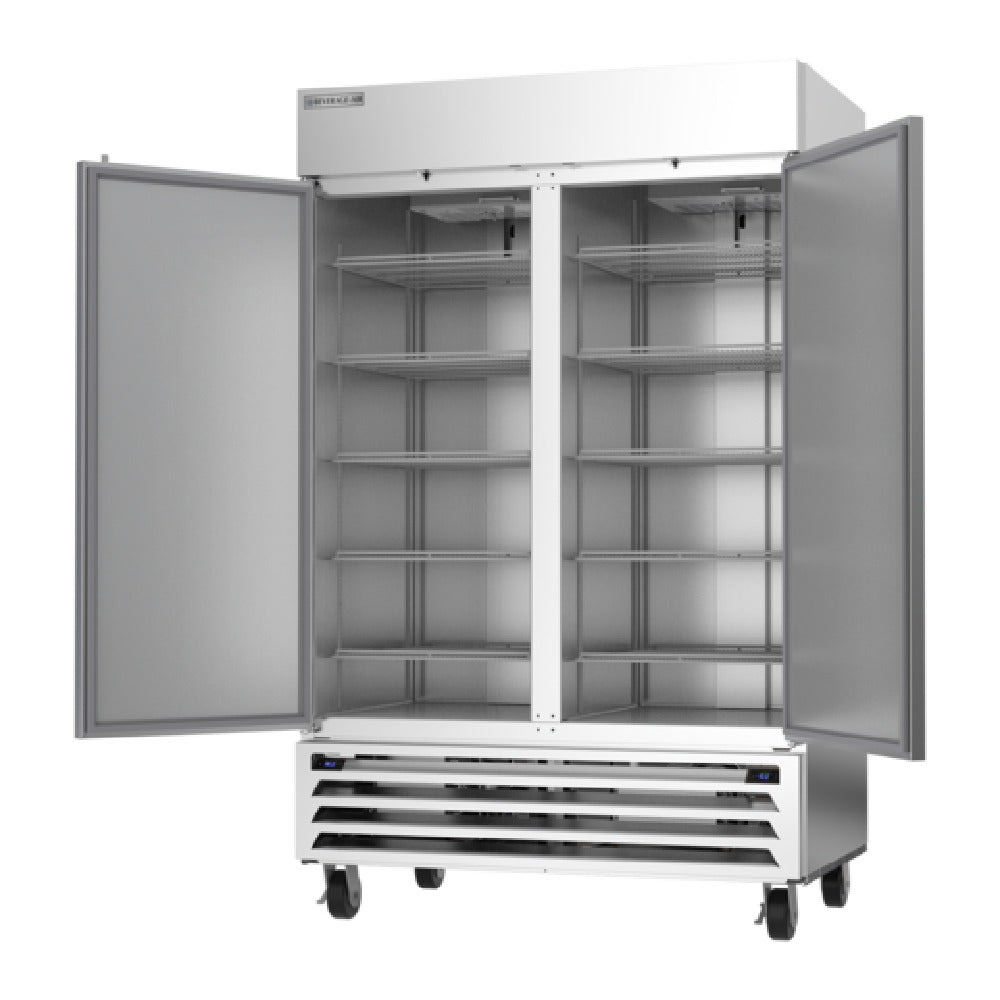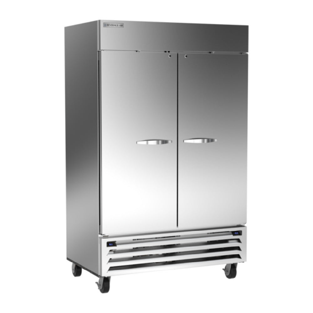 The Beverage Air HBRF49HC-1-A Horizon Series Refrigerator-Freezer is a state-of-the-art dual temperature reach-in unit designed for optimal cold storage solutions. This two-section appliance boasts a spacious capacity of 21.01 cubic feet for both the refrigerator on the left and the freezer on the right, making it highly suitable for various commercial settings. Each section is accessible via a solid hinged door, with the right door opening to the freezer and the left to the refrigerator. The unit is equipped with ten adjustable shelves, providing flexibility to accommodate diverse storage needs. Its electronic control system, along with LED interior lighting and a digital display, ensures user-friendly operation and visibility. Constructed from durable stainless steel both inside and out, this appliance guarantees longevity and ease of maintenance. The bottom-mounted self-contained refrigeration system utilizes R-290 Hydrocarbon refrigerant, with a 1/4 HP compressor for the refrigerator and a 3/4 HP compressor for the freezer. This model meets the stringent standards of cULus, UL-EPH Classified, and UL-Sanitation, and is proudly made in the USA. The Beverage Air HBRF49HC-1-A is an exceptional choice for those in the foodservice industry seeking reliable and efficient refrigeration solutions.