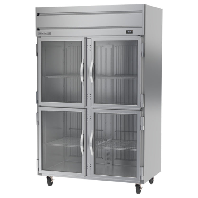 The Beverage Air HRS2HC-1HG Horizon Series Refrigerator is a top-tier, reach-in, two-section refrigeration unit offering a substantial capacity of 46.88 cubic feet. Engineered with precision for commercial use, it features a total of four half glass doors, with two right-hand hinged and two left-hand hinged, ensuring versatile access and visibility of stored items. This refrigerator incorporates six sturdy shelves, providing ample storage flexibility to accommodate various products. Equipped with advanced electronic controls and a digital display, it facilitates precise temperature management. The LED interior lighting enhances visibility, promoting energy efficiency and ease of use. Constructed with a durable stainless steel front and interior, complemented by gray painted sides, it assures longevity and a professional appearance. The top-mounted self-contained refrigeration system is powered by Variable Speed Technology, optimizing cooling performance while reducing energy consumption. Meeting rigorous standards, this unit is cULus, UL EPH Classified, and UL-Sanitation certified, affirming its commitment to safety and sanitation. Proudly made in the USA, the Beverage Air HRS2HC-1HG is an exemplary choice for diverse industries, including restaurants, catering services, and retail environments, where high-capacity, reliable refrigeration solutions are paramount.