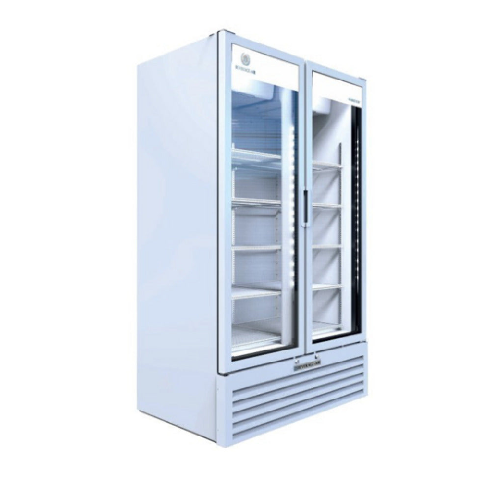 The Beverage Air MT34-1W Marketeer™ Series Refrigerated Merchandiser is a versatile reach-in unit engineered for optimal product display and storage across various market segments, including retail environments and food service industries. With a spacious two-section design, it offers a total capacity of 26.12 cubic feet within its 39-1/2" width and 79" height dimensions. Featuring two double pane hinged glass doors with secure locks, this merchandiser ensures visibility and safety of stored items. The mechanical temperature control allows for precise settings, making it suitable for a variety of refrigerated goods. Equipped with ten adjustable wire shelves, it offers customizable storage solutions to meet diverse merchandising needs. Enhanced with energy-efficient LED interior lighting, it effectively showcases products while minimizing energy consumption. The self-closing door mechanism with a recessed pocket door handle enhances ease of use and helps maintain internal temperatures. A bottom-mounted, self-contained refrigeration system utilizing R290 Hydrocarbon refrigerant underscores its commitment to environmentally friendly operation. The 1/2 HP motor ensures powerful cooling performance. Both the interior and exterior feature a sleek white finish that seamlessly integrates into any commercial setting. The unit meets cULus, UL EPH Classified, and UL-Sanitation standards, ensuring adherence to rigorous safety and quality benchmarks.