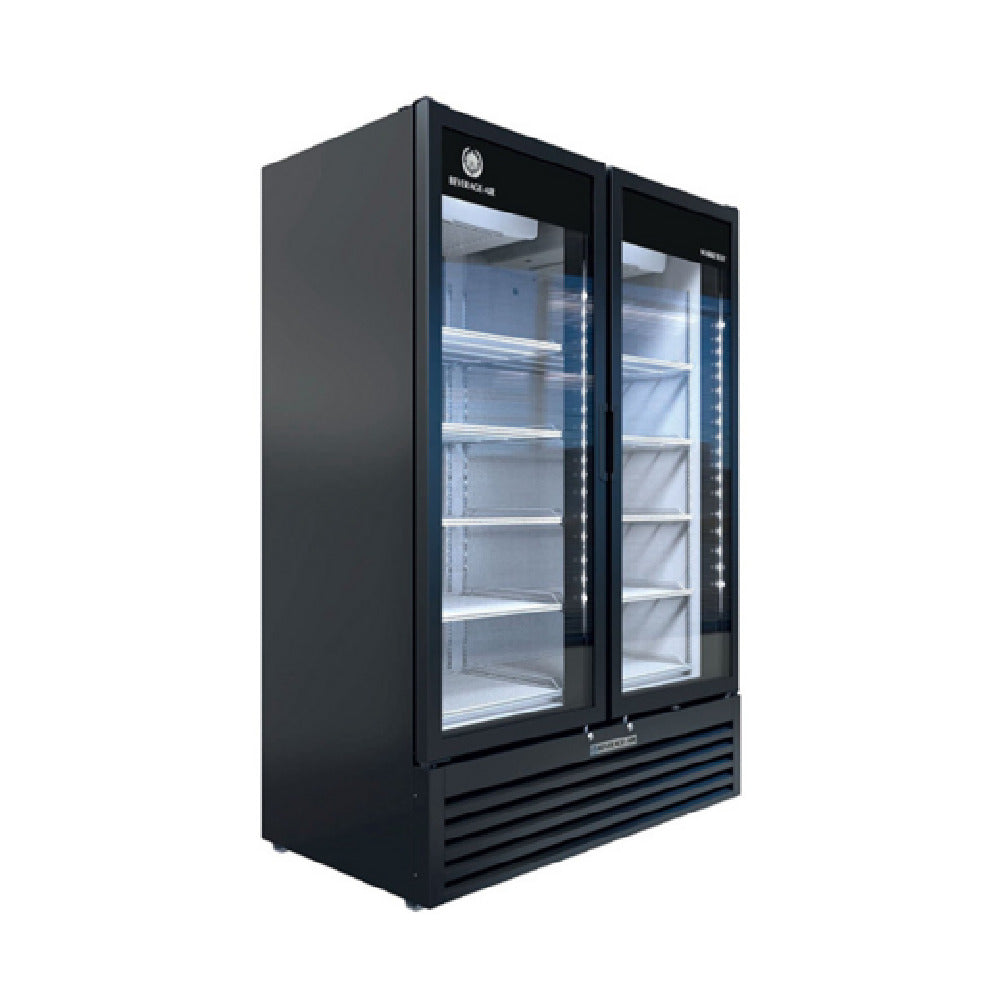 The Beverage Air MT53-1B Marketeer™ Series Refrigerated Merchandiser Reach-in Two-section is an expertly engineered solution for displaying perishable goods across various commercial environments. It features a robust 41.66 cubic feet capacity, making it ideal for businesses requiring ample refrigerated storage space. The unit is equipped with (2) double pane hinged glass doors, which include locks to ensure security and energy efficiency. The mechanical temperature control facilitates precise climate management, while the (10) adjustable wire shelves provide customizable storage configurations. Enhanced by LED interior lighting, the merchandiser offers superior product visibility. Its self-closing doors, complete with recessed pocket door handles, enhance user convenience and prevent energy loss. The bottom-mounted, self-contained refrigeration system utilizes R290 Hydrocarbon refrigerant, aligning with eco-friendly practices. This merchandiser has a 1/2 HP compressor, ensuring reliable performance. The white interior and black exterior provide a sleek appearance that complements various retail settings. It carries cULus, UL EPH Classified, and UL-Sanitation certifications, underscoring its compliance with industry health and safety standards. The Beverage Air MT53-1B is a versatile and efficient refrigerated solution for supermarkets, convenience stores, and other retail operations, providing exceptional storage and display capabilities.