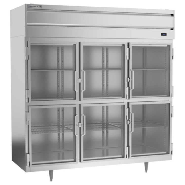 The Beverage Air PF3HC-1BHG Freezer Reach-in Three-section is an industrial-grade storage solution specifically designed for the food service industry. With a substantial capacity of 68.34 cubic feet, it provides ample space for preserving a variety of frozen goods, making it an excellent choice for large-scale kitchens and food storage facilities. This model features six lockable glass half doors, enhancing visibility and security, while its nine adjustable shelves offer customizable storage configurations. An exterior digital thermometer ensures precise temperature monitoring, while interior LED lighting provides clear visibility of contents. The freezer's top-mounted self-contained refrigeration system optimizes space and efficiency. Its aluminum interior and stainless steel front and sides, complemented by galvanized top, bottom, and back, offer robust durability and ease of maintenance. Powered by two 3/4 horsepower motors, this unit is engineered for high performance. Safety and compliance are ensured with cULus, UL EPH Classified, and UL-Sanitation certifications. Proudly made in the USA, the Beverage Air PF3HC-1BHG is a reliable and versatile addition to professional environments requiring consistent, high-capacity freezing solutions, supporting both operational efficiency and food safety protocols.
