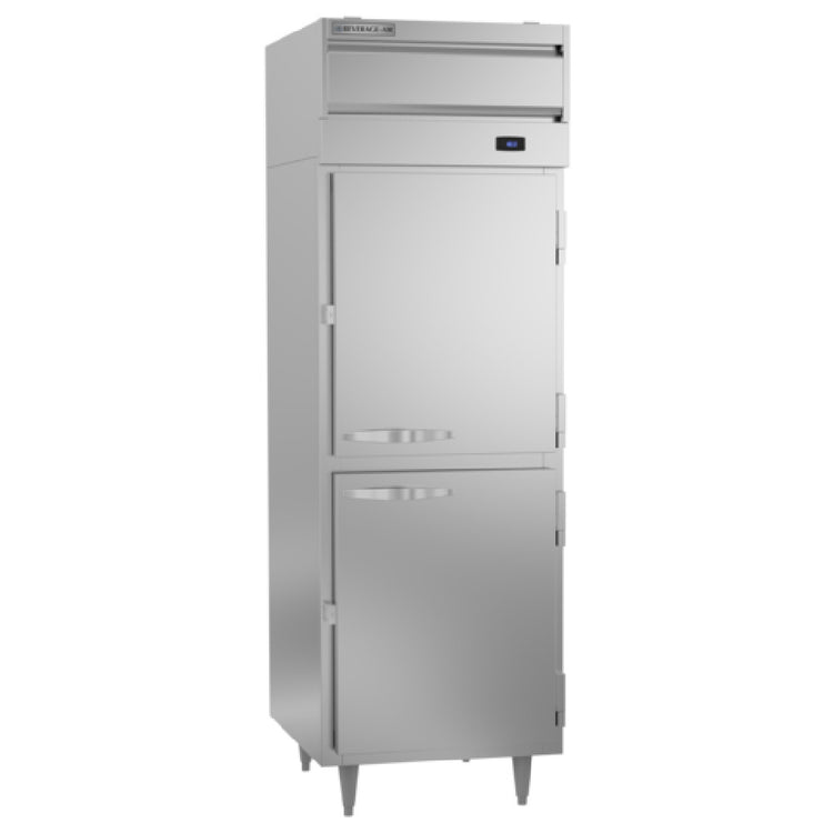 The Beverage Air PH1-1HS Warming Cabinet Reach In One-section is a finely engineered appliance designed to cater to the specific needs of commercial kitchens and food service operations. With a substantial capacity of 21.01 cubic feet, this cabinet is equipped with two half-height doors that provide easy access while maintaining internal temperature. Security is ensured with a cylinder lock, making it suitable for environments where food safety and protection are paramount. Inside, it features three silver freeze shelves that are adjustable to accommodate various storage requirements. The cabinet's top-mounted heating system ensures consistent warmth throughout, monitored by an exterior digital thermometer for precise temperature control. Its construction is well thought out, featuring an aluminum interior for durability and easy cleaning, complemented by a stainless steel front and sides for a sleek, professional appearance. The galvanized top, back, and bottom further enhance its robustness, making it a lasting investment. Certified by UL and UL EPH, this warming cabinet adheres to stringent safety and sanitation standards. Proudly made in the USA, the Beverage Air PH1-1HS is a versatile and reliable choice for any establishment needing efficient and secure warming solutions.
