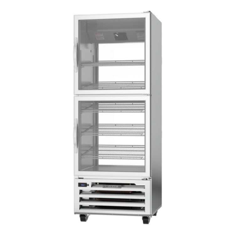 The Beverage Air RID18HC-HG Refrigerator Pass-Thru One-section is a versatile and efficient refrigeration solution, offering 18.38 cubic feet of storage space for various commercial applications. This unit features four half glass hinged doors, providing convenient access and visibility, while its five adjustable shelves allow for customizable organization. Enhanced by LED interior lighting, this refrigerator ensures optimal visibility of contents. The bottom-mounted self-contained refrigeration system houses a 1/4 HP compressor utilizing R290 Hydrocarbon refrigerant, known for its eco-friendliness. Crafted with a stainless steel exterior and interior, this refrigerator emphasizes durability and hygiene. Its 3-inch casters make mobility a breeze, facilitating easy repositioning and cleaning in commercial kitchens or retail environments. The Beverage Air RID18HC-HG is cULus, UL EPH Classified, and UL-Sanitation certified, ensuring compliance with North American safety and sanitation standards. Proudly made in the USA, this refrigeration unit is an excellent choice for businesses seeking a reliable and sustainable solution to their cooling needs across various industry segments, from food service to retail. Its robust construction, coupled with energy-efficient technology, caters to operators aiming to optimize operational efficiency while maintaining high-quality food preservation standards.