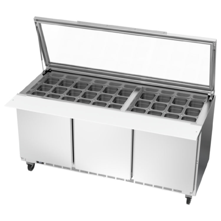 Beverage Air SPE72HC-30M-STL Mega Top Refrigerated Counter With See-thru Lid Three-section
