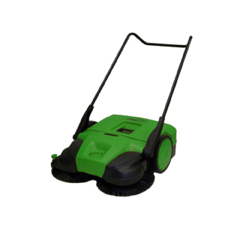 The Bissell BG-497 Deluxe Sweeper 38" Wide Triple Brush is a highly efficient cleaning tool tailored for commercial environments. This sweeper is equipped with a 38-inch wide triple brush system, designed for extensive coverage and thorough cleaning performance. Its push power mechanism allows for easy maneuverability, making it ideal for various surfaces. The BG-497 features a substantial 13.2-gallon debris container, ensuring ample capacity for prolonged cleaning sessions without frequent emptying. The ergonomic push handle enhances user comfort, allowing for extended use with minimal strain. An adjustable fiberglass brush adapts to different floor types, ensuring optimal cleaning while protecting delicate surfaces. Side rollers facilitate smooth operation around obstacles and furniture, further enhancing its versatility. The inclusion of a lubricant spray supports the maintenance of moving components, ensuring longevity and consistent performance. This sweeper is an excellent choice for commercial spaces like retail stores, warehouses, and large offices, where efficient and reliable cleaning is paramount. Its design focuses on durability and adaptability, addressing the varied needs of facility maintenance professionals seeking a robust cleaning solution.