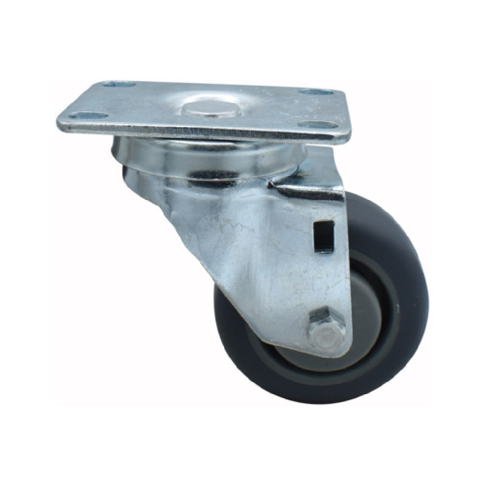 The BK Resources 3SBR-1PT-GR Rubber Wheel is a highly versatile component designed for demanding industrial environments. With a 3-inch diameter and a top plate measuring 2-3/8 inches by 3-5/8 inches, this rubber wheel is engineered to deliver durable performance across various applications. It features a 1/2-inch king pin and can support up to 250 lbs, making it suitable for heavy-duty usage. This wheel is non-marking and lacks a brake, allowing for smooth, uninterrupted movement. Its double ball bearing construction ensures a quiet and efficient operation, while the zinc-plated finish adds a layer of protection against corrosion. The wheel's exceptional resistance to oil, grease, water, and solvents enhances its longevity in challenging conditions. With an operational temperature range of -45°F to 180°F, it remains reliable under diverse temperature settings, making it ideal for businesses in manufacturing, food service, and logistics sectors. The gray color and NSF certification further underscore its suitability for environments where safety and hygiene are paramount. This rubber wheel stands out for its robust design and multifaceted functionality, effectively meeting the needs of different market segments within industries requiring reliable mobility solutions.