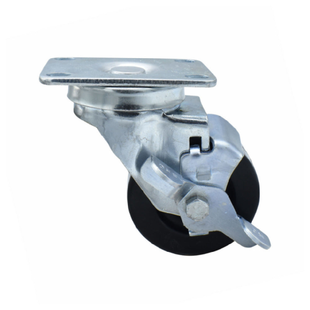The BK Resources 3SBR-1PT-HR-TLB Hard Rubber Wheel is a precision-engineered component designed for versatility across various industry applications. With a 3-inch diameter, this wheel is supported by a top plate measuring 2-3/8 inches by 3-5/8 inches, providing a stable and durable mounting solution. It features a 1/2-inch king pin and is capable of supporting up to 300 pounds, making it suitable for heavy-duty tasks. The wheel is crafted from hard rubber, ensuring longevity and resilience, while its non-marking properties prevent damage to floors, critical for maintaining aesthetic standards in sensitive environments. Equipped with a top lock brake, this wheel offers enhanced safety and control, a crucial aspect for operational efficiency. The double ball bearing and nylon bearing sleeve ensure smooth and quiet movement, reducing operational noise and wear. The wheel is designed to function across a wide operational temperature range of -40°F to 160°F, demonstrating reliability under various conditions. Finished with a zinc plating, this wheel is resistant to corrosion, extending its service life. NSF certification further underscores its compliance with health and safety standards, making it a trusted choice for sectors that prioritize hygiene and safety, such as food service and healthcare industries.