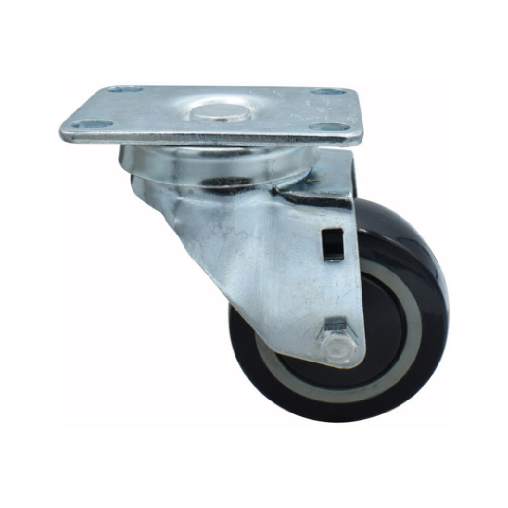 The BK Resources 3SBR-1PT-PLY Polyurethane Wheel is a 3-inch diameter wheel designed for versatility and durability in various industrial applications. With dimensions of 2-3/8 inches by 3-5/8 inches for the top plate, this wheel is engineered to handle loads up to 300 lbs, making it suitable for heavy-duty tasks. It features a 1/2-inch king pin, contributing to its sturdy construction. This wheel is particularly beneficial in environments where chemical exposure is a concern, as it is resistant to acids and caustics. Additionally, the non-marking nature of the polyurethane ensures clean and professional flooring, even under heavy use. The wheel operates efficiently within a temperature range of -45°F to 180°F, showcasing its adaptability to extreme conditions. Its double ball bearing mechanism enhances smooth movement and reliability. The zinc plating adds an extra layer of protection against corrosion, extending the wheel's lifespan. Although it does not include a brake mechanism, its design focuses on ease of movement and flexibility. NSF certification assures compliance with rigorous health and safety standards, reinforcing its application in sectors like food service and healthcare. This wheel's specific engineering and materials cater to diverse market segments requiring reliable and resilient equipment.