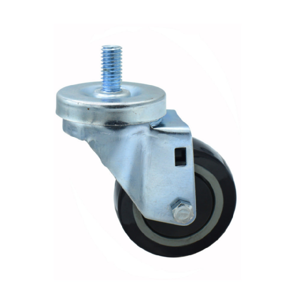 BK Resources 3SBR-4ST-PLY Polyurethane Wheel 3" Diameter 1/2"-13 x 1" Threaded Stem is engineered for industries requiring mobility solutions with specific resilience and durability needs. This wheel boasts a 3-inch diameter, featuring a 1/2"-13 x 1" threaded stem, which ensures a secure and adaptable fit across various equipment types, enhancing versatility in application. Designed without a brake, it supports a substantial weight capacity of 300 lbs, making it suitable for heavy-duty usage. The wheel operates efficiently within an extensive temperature range of -45°F to 180°F, which underscores its adaptability in both cold and warm environments. Notably, it is resistant to acids and caustics, a critical feature for industries dealing with harsh substances or demanding environments. The inclusion of a double ball bearing system ensures smooth and reliable motion, reducing friction and wear over time. With zinc plating and NSF certification, this wheel not only promises longevity and robustness but also adheres to high safety and quality standards. This product is ideal for markets demanding high-performance mobility solutions with stringent durability and operational requirements, such as manufacturing, food service, and chemical industries.