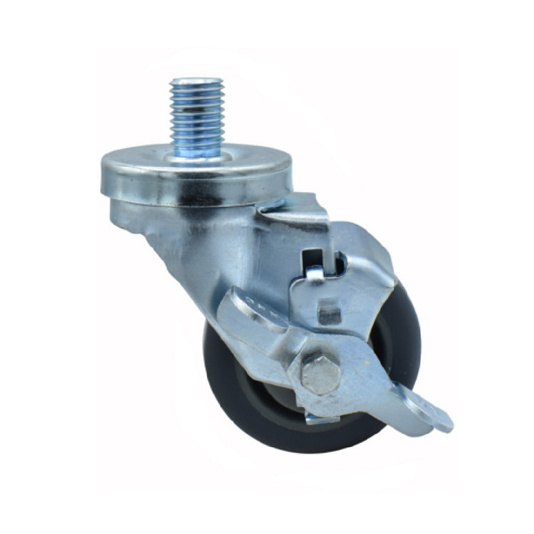 The BK Resources 3SBR-6ST-GR-TLB Rubber Wheel is a versatile and durable component designed with a 3-inch diameter, perfect for those requiring reliable mobility solutions. This wheel features a 3/4"-10 x 1" threaded stem, enhancing ease of attachment and compatibility with various equipment. Equipped with a top lock brake, the wheel ensures stability and safety in diverse operational settings. Its non-marking design makes it ideal for use on sensitive flooring surfaces, avoiding unwanted scuffs while supporting a robust 250 lb. weight capacity. The wheel operates efficiently in a wide temperature range of -45°F to 180°F, catering to environments with extreme conditions. This product is resistant to oil, grease, water, and most solvents, providing longevity and resilience in demanding industrial and commercial applications. The double ball bearing construction facilitates a smooth and quiet operation, enhancing user experience. Zinc plating adds a layer of corrosion resistance, ensuring the wheel retains its integrity over time. With an understated gray finish, the BK Resources 3SBR-6ST-GR-TLB Rubber Wheel is NSF certified, emphasizing its compliance with industry standards for safety and quality. This product is an excellent choice for industries seeking reliable, high-performance wheel solutions.
