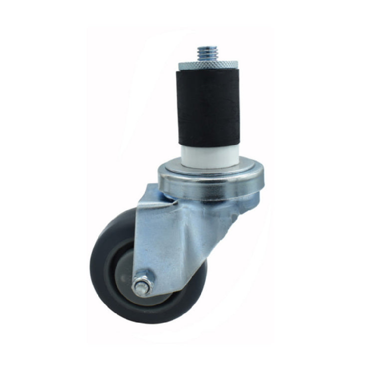 The BK Resources 3SBR-RA-GR Rubber Wheel - 3" Diameter 1-5/8" Expanding Stem is a specialized component designed for demanding industrial applications. With a 3-inch diameter wheel and a 1-5/8-inch expanding stem, this product is engineered for durability and versatility across various settings. Its non-marking rubber construction ensures surfaces remain unblemished, providing a seamless experience in environments requiring aesthetic preservation. The wheel supports a substantial weight capacity of 250 lbs, accommodating heavy-duty requirements. Operational efficiency is maintained across a wide temperature range from -45°F to 180°F, highlighting its resilience and adaptability under extreme conditions. The wheel is resistant to oil, grease, water, and most solvents, enhancing its longevity in challenging environments. Equipped with double ball bearings, the wheel guarantees smooth and quiet operation, minimizing disruptions in noise-sensitive areas. The zinc-plated finish offers additional protection against corrosion, making it a reliable choice for long-term use. Presented in a sleek gray color, it aligns with professional aesthetic standards. Furthermore, the product's NSF certification underscores its compliance with stringent safety and quality benchmarks, making it a trusted option for industries requiring robust and dependable wheel solutions.