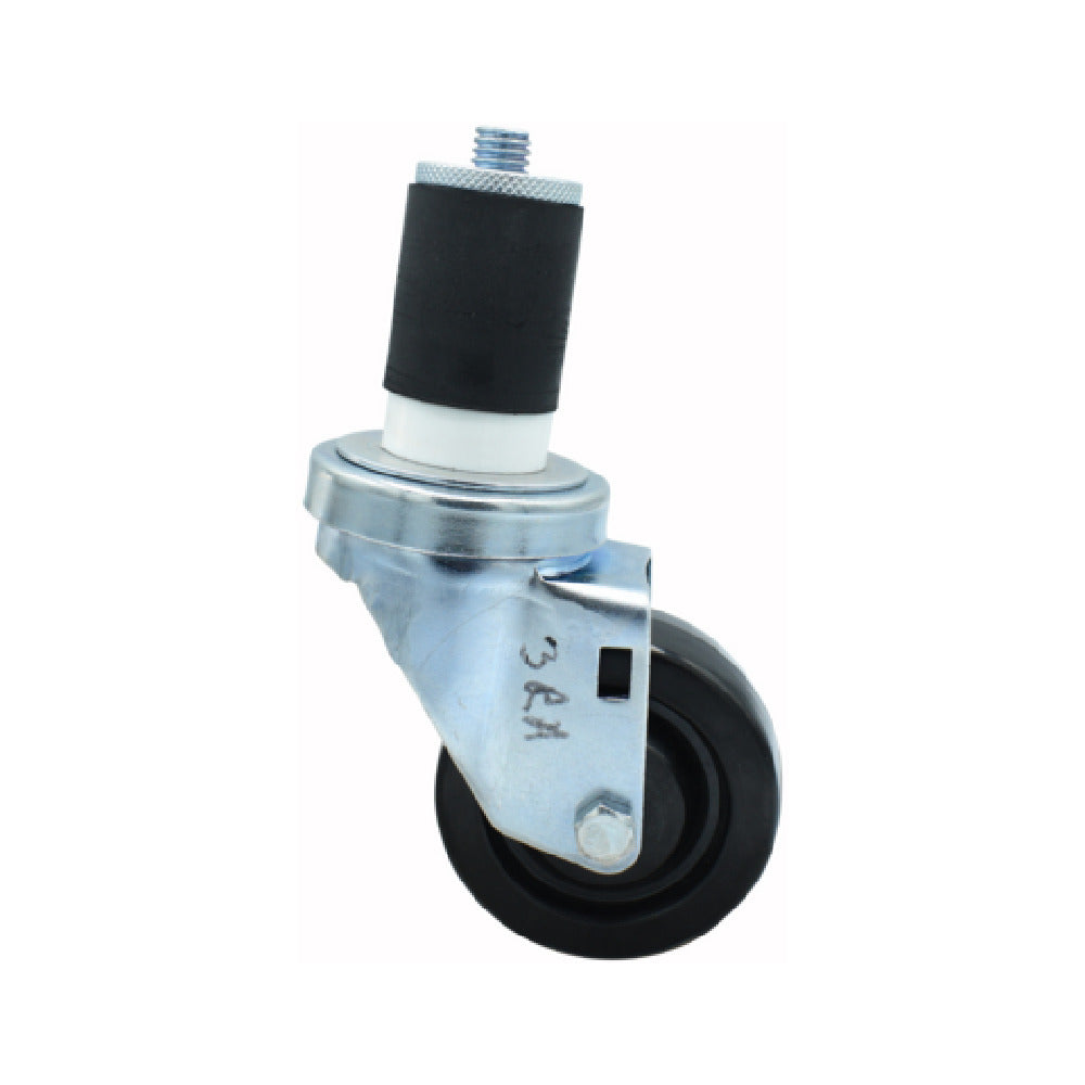 BK Resources 3SBR-RA-LDP Polyolefin Wheel 3" Diameter 1-5/8" Expanding Stem is an industrial-grade component designed for a variety of applications, particularly within environments demanding robust mobility solutions. This wheel, with its 3-inch diameter and 1-5/8-inch expanding stem, ensures compatibility with a broad range of equipment. Featuring a weight capacity of 300 lbs, it provides reliable support for heavy-duty tasks. The wheel's construction includes polyolefin material, known for its resistance to chemicals and impact, making it suitable for challenging settings. Notably, it operates efficiently across a wide temperature range from -45°F to 180°F, thus accommodating extreme conditions. Enhanced by a double ball bearing system, the wheel ensures smooth and consistent operation. It is zinc-plated, offering an added layer of corrosion resistance, and meets NSF standards, emphasizing its suitability for use in environments where hygiene is critical. The absence of a brake enhances its suitability for applications where free movement is prioritized. This product is meticulously designed for sectors requiring durable and reliable wheel solutions, such as food service, medical facilities, and industrial applications, where its unique features provide significant operational advantages.