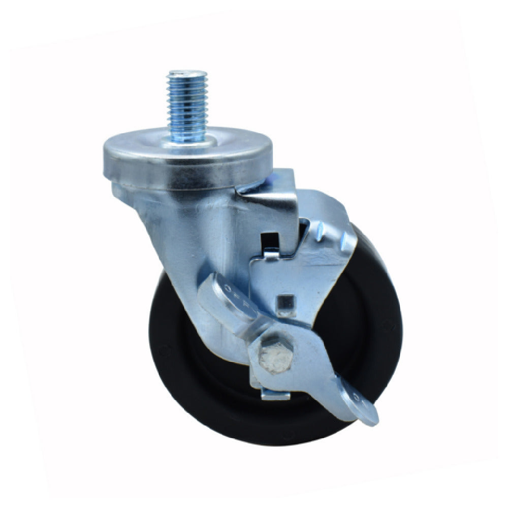 BK Resources 4SBR-5ST-LDP-TLB Polyolefin Wheel is a highly durable and versatile wheel solution designed specifically to meet the varied needs of different industrial segments. With a 4-inch diameter, this wheel is equipped with a 5/8"-13 x 1" threaded stem, making it suitable for a wide range of applications where secure and reliable attachment is essential. The integrated top lock brake enhances operational safety by providing immediate and secure stopping power, a crucial feature in dynamic and fast-paced environments. Capable of supporting a weight capacity of up to 300 pounds, this wheel is robust enough to handle substantial loads, making it ideal for heavy-duty industrial tasks. Its operational temperature range from -45°F to 180°F ensures optimal performance in both extreme cold and hot conditions, offering reliability in diverse climatic environments. The double ball bearing construction contributes to smooth and efficient operation, reducing friction and wear over time. Additionally, the zinc-plated finish provides resistance to corrosion, extending the wheel's lifespan even in challenging environments. NSF certification further reinforces its suitability for use in settings where hygiene and public safety are paramount. This polyolefin wheel is an excellent choice for industries looking for a dependable, high-performance wheel solution.