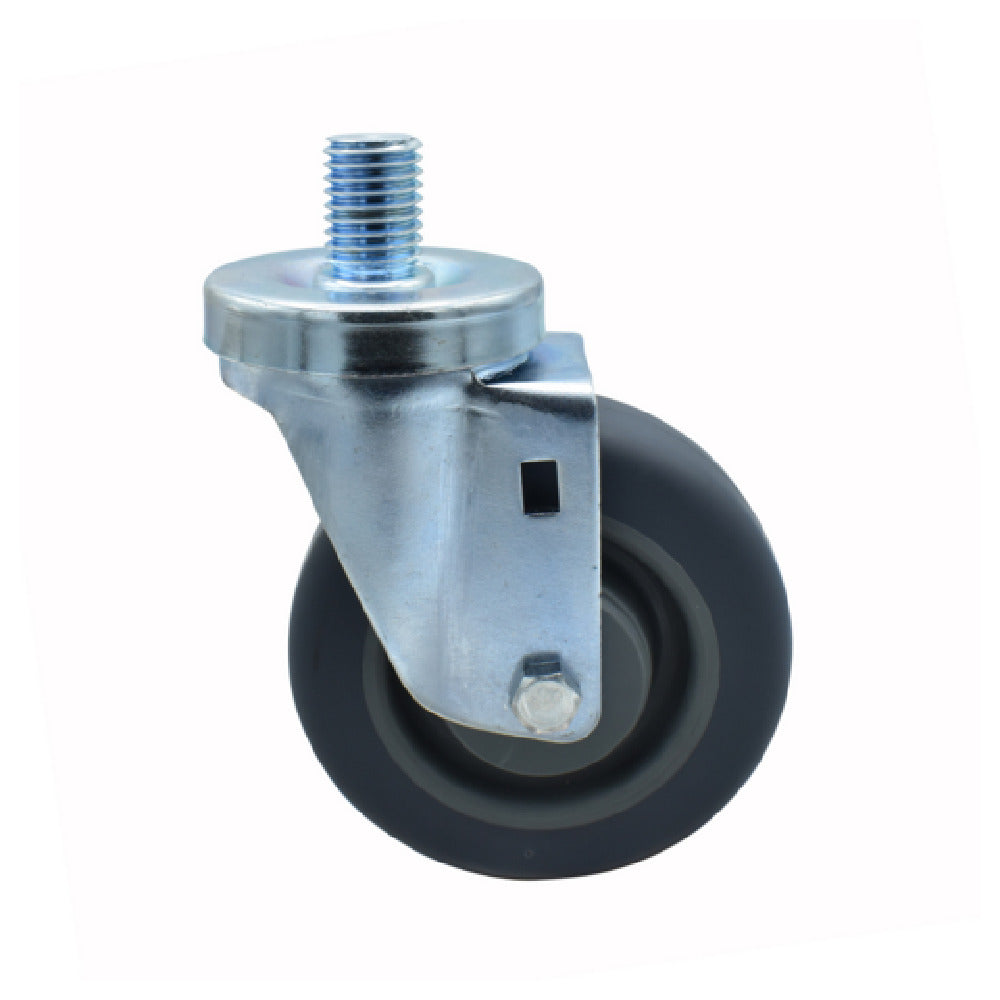 The BK Resources 4SBR-6ST-GR Rubber Wheel is a versatile and durable component designed for demanding industrial environments. With a 4-inch diameter and a 3/4"-10 x 1" threaded stem, this wheel is engineered for compatibility with a wide range of equipment. Its non-marking rubber composition ensures that it maintains the integrity of flooring surfaces, making it suitable for both commercial and industrial settings. The wheel boasts a substantial weight capacity of 250 lbs., accommodating heavy-duty applications with ease. Designed to withstand extreme temperatures, its operational range spans from -45°F to 180°F, making it an excellent choice for environments with fluctuating conditions. The wheel is also resistant to oil, grease, water, and most solvents, enhancing its longevity and reliability in various workspaces. Featuring a double ball bearing system, it guarantees smooth and quiet operation, which is critical in settings where noise reduction is a priority. The zinc plating provides an additional layer of protection against corrosion, ensuring the wheel’s durability. Available in a neutral gray color, this wheel complies with NSF standards, confirming its adherence to public health and safety standards, which is essential for industries where hygiene and safety are paramount.
