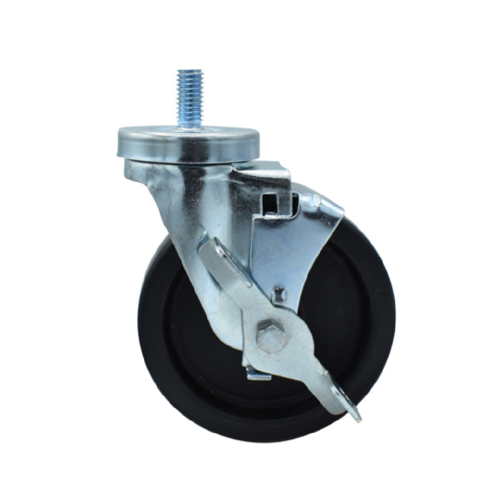 The BK Resources 5SBR-4ST-LDP-TLB Polyolefin Wheel is a high-performance caster designed for applications requiring durability and efficiency. With a 5-inch diameter, this wheel is engineered to support a substantial weight capacity of up to 300 lbs, making it ideal for heavy-duty tasks across various industries. The wheel features a 1/2"-13 x 1" threaded stem for secure attachment, ensuring stability and safety during operation. A key highlight of this product is its top lock brake, which provides enhanced control and precision, preventing unwanted movement and ensuring reliability in demanding environments. The operational temperature range of -45°F to 180°F allows this wheel to function effectively in extreme conditions, making it a versatile choice for both cold storage facilities and high-temperature applications. Additionally, the double ball bearing construction facilitates smooth movement and longevity, while the zinc plating offers resistance to corrosion, enhancing durability. As NSF certified, this polyolefin wheel meets stringent safety and quality standards, making it a trusted component in food service and other critical industries. Whether for use in commercial kitchens, manufacturing settings, or logistics, the BK Resources 5SBR-4ST-LDP-TLB Polyolefin Wheel delivers exceptional performance and reliability.