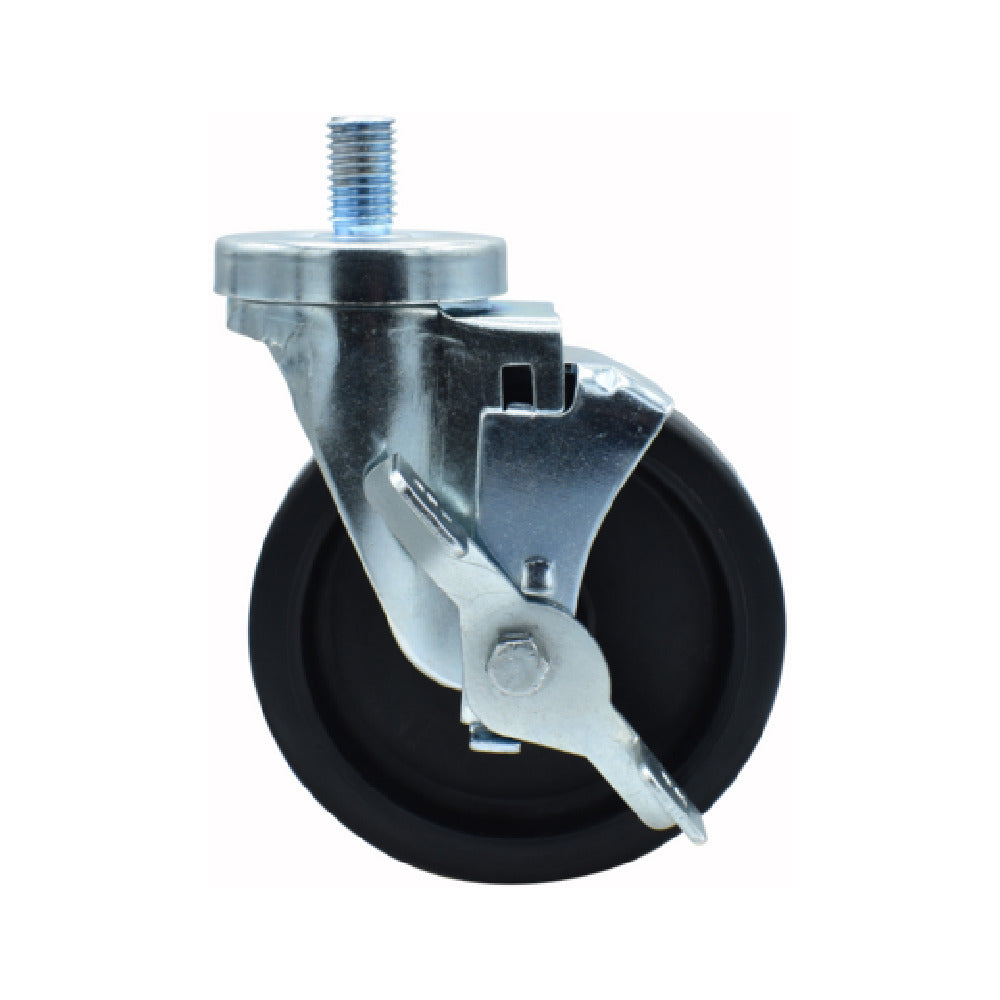 The BK Resources 5SBR-5ST-LDP-TLB Polyolefin Wheel is a versatile component tailored for various industrial applications, featuring a 5-inch diameter and a 5/8"-13 x 1" threaded stem for seamless integration. Engineered with a top lock brake, it ensures safety and stability during operation, accommodating up to a 300 lb. weight capacity. The wheel's operational temperature range spans from -45°F to 180°F, making it suitable for diverse environments. Equipped with double ball bearings, it provides smooth and efficient rotation, enhancing performance and durability. The wheel's zinc plating not only offers corrosion resistance but also meets NSF standards, ensuring compliance with public health and safety regulations. This polyolefin wheel is ideal for industries requiring robust and reliable transportation components, such as warehousing, manufacturing, and food service. Its exceptional durability and temperature tolerance make it a prime choice for environments where safety, efficiency, and compliance are of utmost importance.