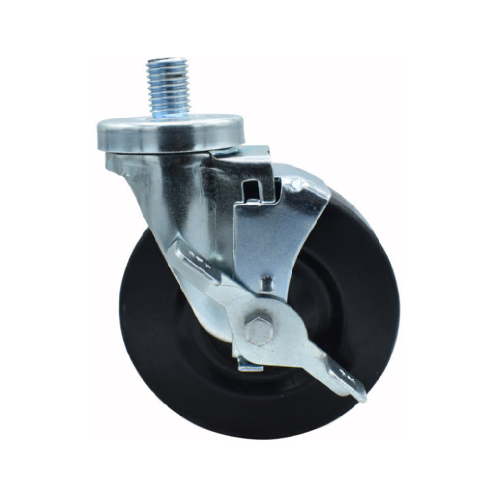 The BK Resources 5SBR-6ST-HR-TLB Hard Rubber Wheel stands out with its durable 5-inch diameter, designed to support a weight capacity of up to 300 pounds, making it an essential component across various industrial sectors. This wheel features a 3/4"-10 x 1" threaded stem that ensures secure attachment and compatibility with a wide range of equipment. The inclusion of a top lock brake enhances stability and safety, providing reliable performance in dynamic environments. Its operational temperature range of -40° to 160° F makes it versatile for use in extreme conditions, whether in cold storage facilities or high-heat settings. The hard rubber material ensures a balance between toughness and flexibility, while the nylon bearing sleeve and double ball bearing assembly contribute to smooth and efficient movement. Zinc plating offers added protection from corrosion, extending the wheel's lifespan and maintaining NSF compliance, which is essential for environments adhering to health and safety standards. These features collectively position the BK Resources 5SBR-6ST-HR-TLB Hard Rubber Wheel as a valuable asset for industries requiring robust mobility solutions, whether in warehousing, manufacturing, or food service environments, where reliability and durability are paramount.
