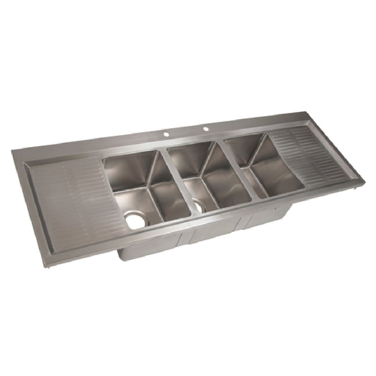 BK Resources BK-DIS-1014-3-12T-PG Drop-In Sink Three Compartment 58-1/8"W X 20"D X 10-5/8"H Overall Size