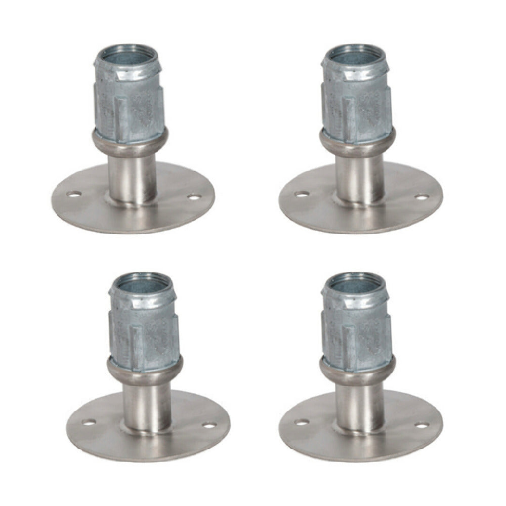 BK Resources BK-SSRFAF-WH-4 Flange Foot With Holes Stainless Steel Over White Metal is a highly durable and reliable component designed for various industrial applications. This flange foot is tailor-made to fit 1-5/8" OD round tubing, providing versatility and adaptability in installation. Constructed with stainless steel over a white metal base, it combines strength with corrosion resistance, making it suitable for environments where durability is essential. The adjustable nature of this flange foot enhances its functionality, allowing precise alignment and stability. With an impressive capacity of 2,000 lb., it supports heavy-duty demands, which is ideal for the robust requirements of commercial kitchens, manufacturing facilities, and warehouse settings. Specifically engineered for 16 gauge tubing, this product ensures compatibility with standard industrial materials. The inclusion of holes in the design facilitates secure fastening, contributing to its steadfast performance. Packaged in cases of four, with 100 units per case, it offers scalability for a range of project sizes. NSF certification underscores its compliance with industry standards, ensuring safety and quality. The BK Resources BK-SSRFAF-WH-4 is a practical solution for professionals seeking a dependable, high-capacity flange foot that meets rigorous operational demands across varied sectors.