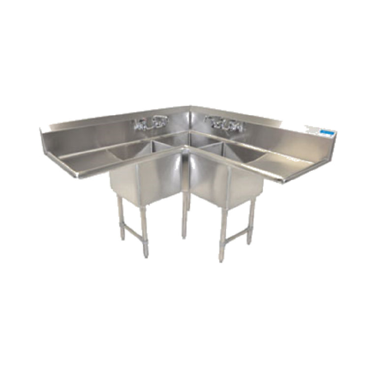 BK Resources BKCS-3-24-14-24T Corner Sink Three Compartment 75"W X 75"D X 43-1/2"H Overall Size