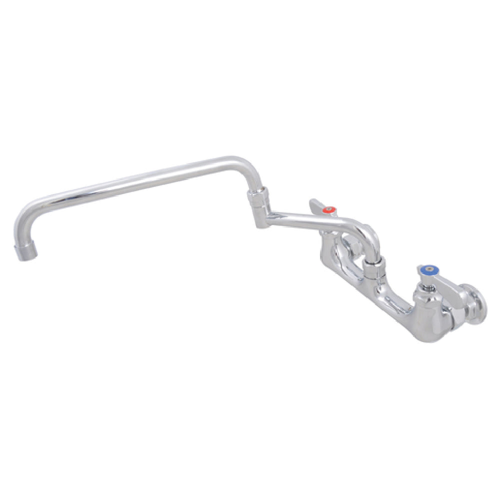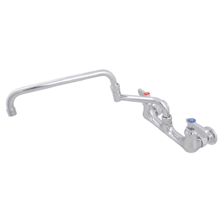 The BK Resources BKF-18-G OptiFlow™ Heavy Duty Faucet is expertly designed for rigorous commercial use. This splash-mounted faucet features an 8-inch on-center configuration, optimizing space and providing robust functionality for varied industrial applications. Its standout feature is the 18-inch double-jointed swing spout, which allows for maximum reach and flexibility, making it ideal for dynamic kitchen environments. The double O-ring spout seal ensures a reliable, leak-proof performance, while the 1/4 turn ceramic cartridges guarantee durability and ease of operation. Integral check valves are incorporated to prevent backflow, enhancing the faucet's efficiency and safety. With a high polished chrome finish, this faucet not only adds a sophisticated touch to any setting but also ensures easy cleaning and maintenance. As a lead-free product, it meets stringent health standards, being NSF certified and cCSAus approved, confirming its compliance with North American standards. Additionally, it is ADA compliant, ensuring accessibility and convenience for all users. The BK Resources BKF-18-G OptiFlow™ Heavy Duty Faucet is a versatile and durable choice for a wide range of professional kitchen and industrial environments, offering a combination of superior design and advanced functionality.