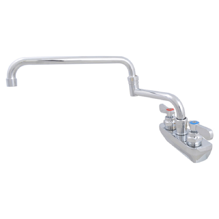 The BK Resources BKF-4SM-18-G OptiFlow™ Heavy Duty Solid Body Faucet is an advanced plumbing fixture designed for high-performance environments. Engineered for splash-mounted installation, this faucet features a precise 4-inch on-center (OC) configuration, facilitating seamless integration into various settings. The standout 18-inch double-jointed swing spout is complemented by a double O-ring spout seal, ensuring durability and a drip-free experience. At the core of its design are 1/4 turn ceramic cartridges that offer smooth operation and enhance the faucet's longevity. An integral check valve is included, providing a safeguard against backflow and ensuring consistent water purity. The high polished chrome finish not only adds a touch of elegance but also provides a resilient barrier against corrosion and tarnishing. This faucet is lead-free, making it a safe choice for environments where health is paramount. It complies with NSF standards, guaranteeing its suitability for use in food-related applications, along with cCSAus certification that affirms its adherence to North American safety requirements. Additionally, its ADA compliance ensures accessibility for all users. The BK Resources BKF-4SM-18-G is an optimal choice for commercial kitchens, hospitals, or any setting where reliability and health standards are critical.