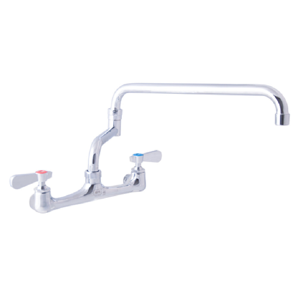 The BK Resources BKF-8W-18-G WorkForce™ Standard Duty Faucet is a splash-mounted solution designed for efficiency and durability with an 8-inch on-center configuration. Featuring an 18-inch double-jointed swing spout, this faucet provides extended reach and flexibility, making it an ideal choice for various commercial applications. Its double O-ring spout seal ensures a secure and leak-resistant operation, enhancing its longevity and reliability. Equipped with 1/4 turn ceramic cartridges, the faucet offers smooth and precise control over water flow, reducing wear and tear over time. The stainless steel valves contribute to its robust construction, while the polished chrome finish adds a sleek, professional appearance suitable for any modern kitchen environment. Certified as lead-free, the BKF-8W-18-G complies with NSF standards, ensuring it meets stringent public health and safety criteria, and is cCSAus certified for quality assurance. This faucet is particularly well-suited for segments of the industry requiring reliable water delivery systems that prioritize durability, hygiene, and compliance with health standards. Its thoughtful design and high-quality materials make it a pragmatic choice for businesses looking for a dependable and versatile faucet solution.