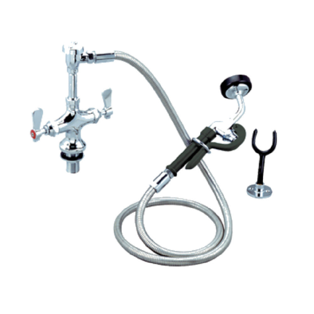 The BK Resources BKF-DDMUS-G OptiFlow™ Utility Spray Faucet is a top-tier choice for professionals seeking precision and durability. This deck mount faucet is engineered with a single hole center setup, ensuring a streamlined installation process. Integral to its design is a 72-inch stainless steel braided hose, providing extended reach and flexibility for various tasks. The faucet comes equipped with a vacuum breaker and integral check valves, promoting safety and preventing backflow. With 1/4 turn ceramic cartridges, it offers smooth operation and long-lasting reliability. The high polished nickel chrome finish enhances its aesthetic appeal while ensuring resistance to corrosion, making it a perfect fit for demanding environments. This lead-free faucet is certified by NSF, highlighting its adherence to health and safety standards. Included with the product are convenient wall hooks and hot/cold mixing hoses, allowing for versatile use in multiple settings. The BK Resources BKF-DDMUS-G is particularly suitable for sectors requiring robust and precise water flow management, including commercial kitchens, laboratories, and industrial facilities. Its advanced features and reliable performance make it an invaluable tool for professionals who demand excellence and efficiency in their operations.