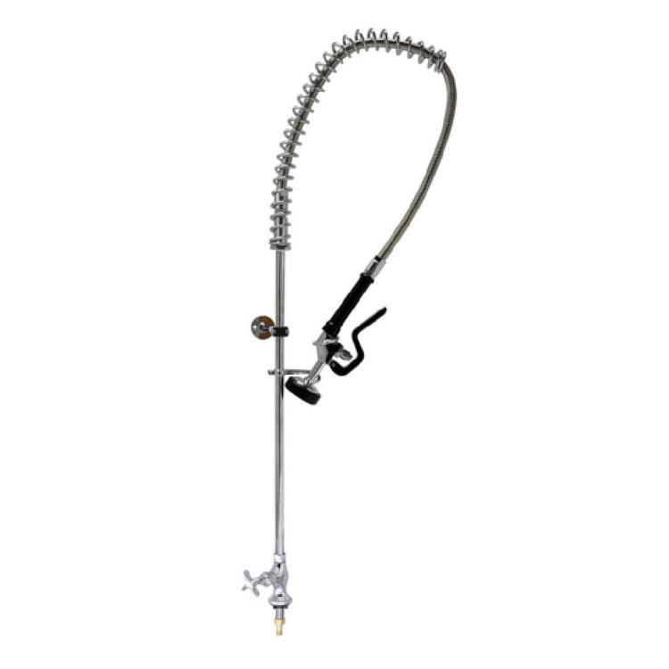 The BK Resources BKF-LF-SDMPR-WB-G OptiFlow™ Pre-rinse Assembly Single Valve Deck Mount is a highly efficient and durable solution for commercial kitchens and food service environments. This assembly features a 44-inch stainless steel braided hose with a triple-ply design capable of handling up to 300 psi, ensuring durability and reliability under demanding conditions. The low flow spray head is designed to operate at less than 1 gallon per minute, providing water conservation without compromising performance. Additionally, it includes a 12-inch wall bracket for secure installation. The assembly is equipped with a 1/2-inch female inlet and 1/4 turn ceramic valves, which ensure a smooth and precise operation. An integral check valve is included for backflow prevention, enhancing the safety and functionality of the unit. This pre-rinse assembly is lead-free and complies with NSF and cCSAus standards, underscoring its commitment to quality and safety. The BK Resources BKF-LF-SDMPR-WB-G is a versatile and practical choice for professionals seeking reliable and efficient pre-rinse solutions in high-paced kitchen environments, offering ease of installation and optimal performance for various market segments within the industry.