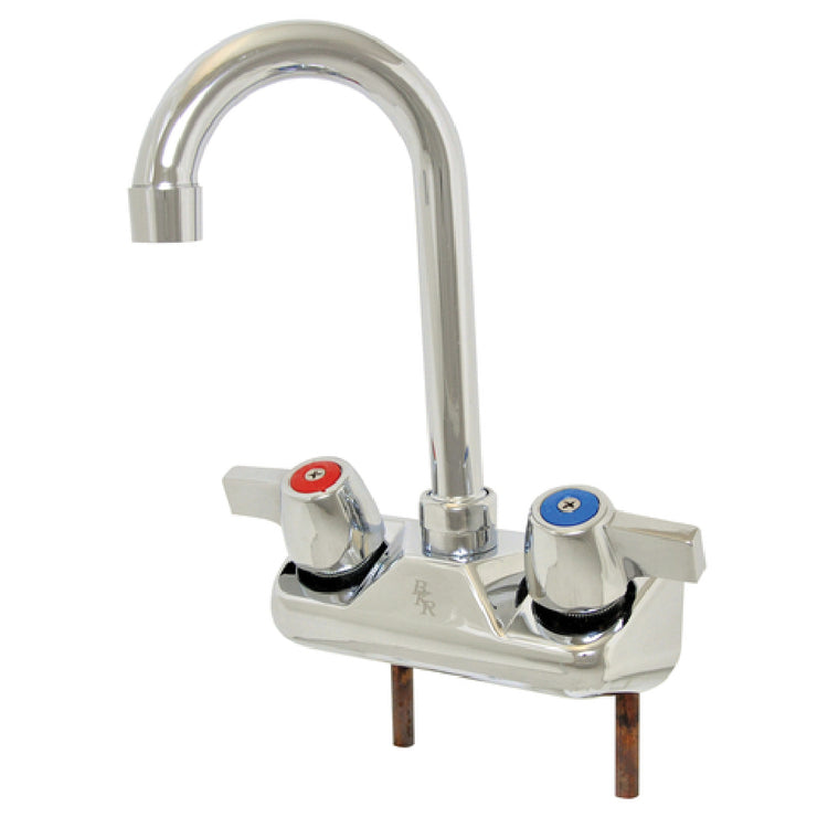 The BK Resources BKF-W2-3G-G WorkForce™ Standard Duty Faucet is engineered for reliability and efficiency, making it an ideal choice for commercial kitchens that require dependable water flow. This shallow splash-mounted faucet features a 4-inch on-center (OC) configuration, ensuring compatibility with a variety of sink setups. The 3-inch gooseneck spout provides ample clearance for washing and filling tasks, while the double O-ring spout seal enhances durability by preventing leaks over extended use. The faucet is equipped with 1/4 turn ceramic cartridges, offering smooth operation and long-lasting performance that withstands rigorous daily use. Finished in polished nickel chrome, this faucet not only delivers a sleek aesthetic but is also lead-free, promoting a safe and hygienic working environment. It’s important to note that wrist blade handles are not available with this model, which is specifically designed to cater to standard duty demands within the foodservice industry. With its blend of functional design and robust construction, the BK Resources BKF-W2-3G-G WorkForce™ Faucet meets the critical needs of restaurants, cafes, and institutional kitchens, combining essential features that ensure both form and function are optimized for professional culinary spaces.