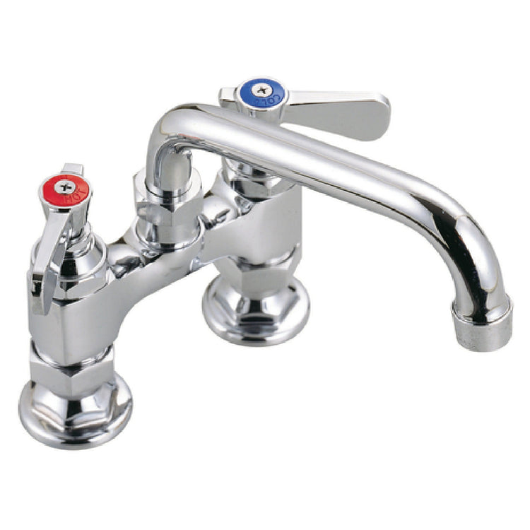 The BK Resources BKF4HD-6-G OptiFlow™ Heavy Duty Faucet Deck Mount 4" OC is engineered for diverse industrial applications, combining durability and precision in its design. Featuring a robust 6" swing spout, this faucet ensures versatile water distribution, supported by a double O-ring spout seal for enhanced leak prevention. It incorporates 1/4 turn ceramic cartridges, a hallmark of longevity and smooth operation, making it ideal for sectors demanding frequent and reliable use. The integral check valves provide an additional layer of safety, preventing backflow and maintaining water quality. Its high polished chrome finish not only adds aesthetic appeal but also contributes to durability in demanding environments. Lead-free composition ensures safety in compliance with health standards, while NSF certification attests to its quality and safety for use in food service settings. Additionally, the faucet is cCSAus certified, affirming its adherence to rigorous performance standards across North America. For accessibility, it meets ADA Compliance, making it a considerate choice for inclusive facilities. The BK Resources BKF4HD-6-G OptiFlow™ faucet, with its precise build and reliable certifications, stands out as a versatile and dependable solution for varied market segments such as restaurants, healthcare, and educational institutions.