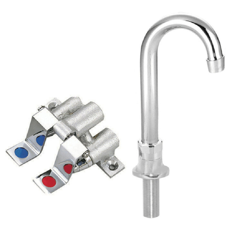 The BK Resources BKFV-DGS-G OptiFlow™ Foot Valve Kit Dual Pedal Includes Deck Mounted 3-1/2" Gooseneck Spout is a precision-engineered solution designed for specific industry segments requiring hands-free water control. This kit features a dual pedal mechanism, expertly crafted from a durable cast body with chrome-plated pedals, ensuring longevity and resilience in high-usage environments. The inclusion of a 3-1/2" gooseneck spout, deck mounted for stability, enhances its utility, allowing for versatile application in various settings. Notably, the foot valve kit is lead-free, emphasizing its compliance with health and safety standards, thereby offering peace of mind in settings where water purity is paramount. Certified by both NSF and cCSAus, this product guarantees adherence to stringent sanitation and safety benchmarks. The BKFV-DGS-G OptiFlow™ Foot Valve Kit delivers a seamless blend of functionality and safety, setting a high standard for foot-operated valve systems across diverse industries, including healthcare, food service, and laboratories, where hygiene and efficient water flow are critical.
