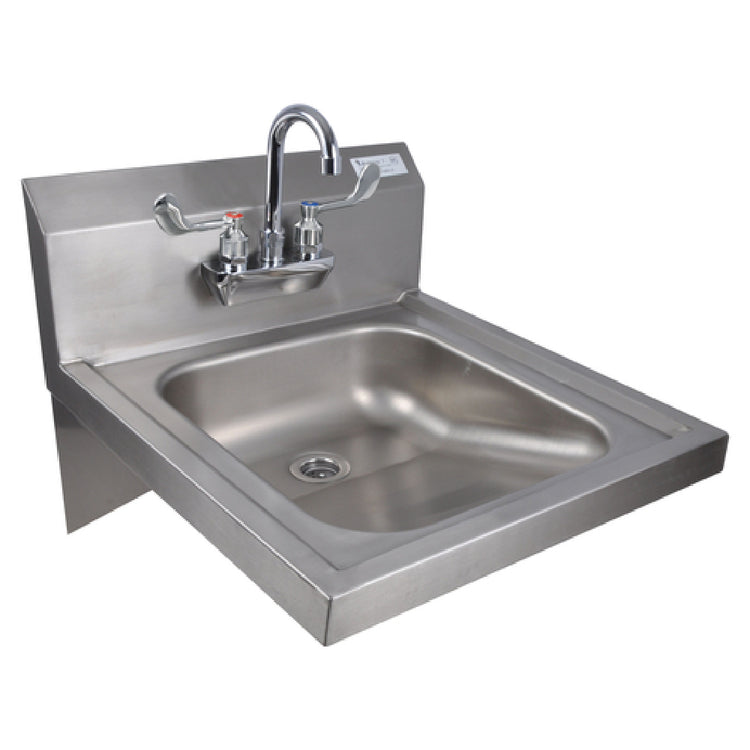 The BK Resources BKHS-ADA-S-P-G ADA Hand Sink is a specialized wall-mounted unit designed to meet ADA compliance standards, making it an essential feature for inclusive and accessible restroom facilities. This compact sink boasts dimensions of 14" wide, 16" front-to-back, and a 5" deep bowl, making it suitable for varied space requirements in commercial and institutional environments. Featuring a 4" OC splash mount faucet with a 3-1/2" gooseneck spout and convenient wrist blade handles (BKF-4DM-3G-G), this hand sink ensures ease of use and hygiene. The 8" backsplash provides additional protection against wall splashes, while the marine edge design prevents spills and enhances cleanliness. Crafted from durable 18/304 stainless steel, this sink guarantees long-lasting performance and resistance to corrosion, ensuring a lead-free water supply. The inclusion of a basket drain and wall bracket facilitates straightforward installation and maintenance, making it a practical choice for a variety of settings including hospitals, schools, and public restrooms. The BK Resources BKHS-ADA-S-P-G ADA Hand Sink combines functionality, compliance, and quality, making it a reliable option for businesses seeking to accommodate all users while maintaining high standards of hygiene and durability.