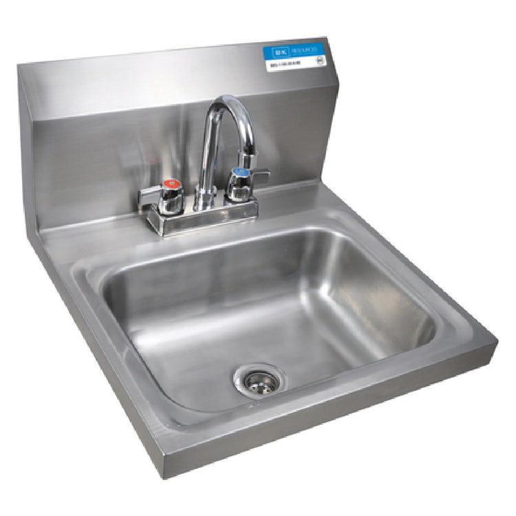 The BK Resources BKHS-D-1410-P-G Hand Sink Wall Mount is a compact yet robust solution, ideal for environments requiring efficient handwashing facilities. With its dimensions of 14 inches in width, 10 inches front-to-back, and a 5-inch deep bowl, it is designed for optimal functionality within constrained spaces. This hand sink includes a 4-inch on-center deck mount faucet, model BKD-3G-G, which is lead-free, ensuring compliance with health and safety standards. The marine edge design prevents water overflow, maintaining cleanliness in busy kitchen or healthcare settings. The sink is constructed from 304 stainless steel, renowned for its durability and resistance to corrosion, making it suitable for heavy-duty use in commercial kitchens, healthcare facilities, and food service environments. Additionally, the hand sink comes with a basket drain and wall mounting hardware, ensuring easy installation and efficient operation. NSF certification emphasizes its adherence to public health standards, guaranteeing a hygienic solution for professionals in demanding industries. The BK Resources BKHS-D-1410-P-G Hand Sink Wall Mount is tailored for those requiring a reliable, space-efficient handwashing station that meets rigorous industry standards.