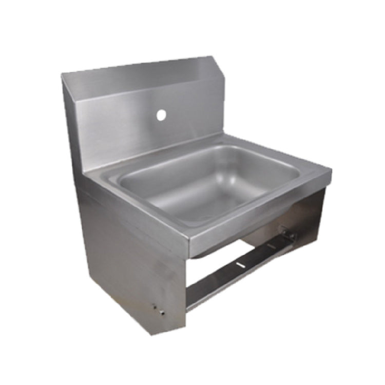 The BK Resources BKHS-W-1410-1-BKK Hand Sink Wall Mount 14" Wide X 10" Front-to-back X 5" Deep Bowl is crafted to meet the rigorous demands of commercial environments. This hand sink is designed with a compact 14” wide and 10” front-to-back profile, featuring a 5” deep bowl, making it a perfect fit for space-constrained areas. It includes a single splash mount faucet hole, tailored for efficient water usage. The unit is constructed with premium 304 stainless steel, ensuring durability and long-lasting performance, especially in high-traffic settings. A 7-3/8” high backsplash is integrated, effectively protecting walls from water damage and maintaining hygiene standards. This product comes complete with a basket drain, knee and wall brackets, simplifying installation and enhancing functionality. Although the knee valve is not included, the sink’s design allows for easy integration with existing fixtures. Certified by NSF, it aligns with stringent public health and safety standards, making it an invaluable asset in restaurant kitchens, medical facilities, and other professional settings where sanitation and reliability are paramount. Its blend of practicality and robust construction underscores its suitability across various industry sectors, ensuring it meets diverse operational needs efficiently.