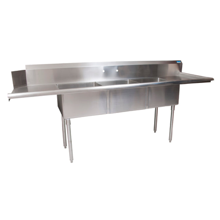 BK Resources BKSDT-3-20-12-20RS Soiled Dishtable & Three-Compartment Sink 100"W X 30-1/2"D X 44"H Overall Size