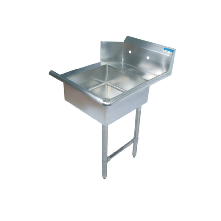 The BK Resources BKSDT6-26-R-SS Heavy Duty Soiled Dishtables are meticulously engineered to meet the rigorous demands of commercial kitchens, boasting a robust straight design with dimensions of 26"W x 30-7/8"D x 46-1/4"H. This unit is designed for right-to-left operation, which optimizes workflow efficiency. The dishtable features a durable 16-gauge, 304 stainless steel top ensuring resilience and longevity in high-usage environments. A 10"H backsplash provides additional protection against spills and splashes. It includes a 20" x 20" x 8" deep pre-rinse sink, perfect for pre-washing soiled dishes. The pre-rinse sink is complemented by 8" OC splash mount faucet holes, ready for easy faucet installation. Front and side raised rolled edges prevent overflow accidents, maintaining a clean workspace. This dishtable comes with a 3-1/2" basket drain (BKDR-4) for effective waste management. The structure is supported by galvanized steel legs and side bracing, providing stability and robustness. Adjustable plastic bullet feet allow for height adjustments, ensuring the unit remains level on uneven surfaces. Certified by NSF, this product aligns with rigorous public health standards, making it a trustworthy choice for diverse market segments within the foodservice industry.