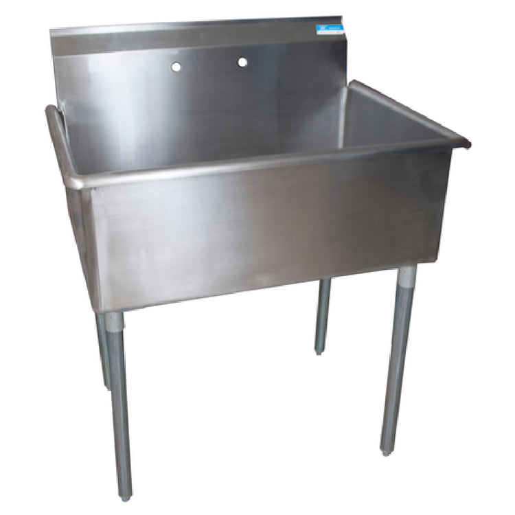 The BK Resources BKUS6-1-3624-14 Utility Sink One Compartment is a versatile fixture ideal for various commercial and industrial applications. With an overall size of 39"W x 27-1/2"D x 41-1/4"H, its generous dimensions provide ample space for efficient utility tasks. The sink features a 36" wide x 24" front-to-back x 14" deep compartment, perfectly accommodating a range of cleaning and prep needs. It is equipped with a 9"H backsplash that effectively prevents splashes and maintains cleanliness. Designed with 8" OC splash mount faucet holes, it facilitates convenient faucet installation tailored to specific operational requirements. The sink is crafted from robust 16/430 stainless steel for the deck and bowl, ensuring durability and resistance to corrosion in high-demand environments. Its 1-1/2" rounded front and side edges enhance user safety and comfort during use. Supported by galvanized legs and complemented by adjustable high-impact corrosion-resistant feet, the sink maintains stability on uneven surfaces. Certified by NSF, it upholds strict public health and safety standards, making it suitable for food service, hospitality, and other professional settings where cleanliness and reliability are paramount. This utility sink is a practical and efficient solution for businesses seeking durable and compliant equipment.