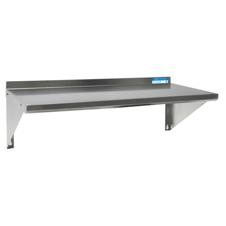 The BK Resources BKWS-1696 Premium Shelf is a wall-mounted storage solution, measuring 96 inches in width and 16 inches in depth, crafted for enhanced durability and functionality. Constructed from high-quality 18/304 stainless steel, this shelf exemplifies a balance of strength and corrosion resistance, making it suitable for various environments, including commercial kitchens and industrial settings. The design features a 1-1/2 inch high rear up-turn, providing additional protection against items slipping off the back, which can be crucial in maintaining orderly storage in bustling spaces. Supported by three 11-1/2 inch angle supports, the shelf ensures stability and can accommodate substantial weight, catering to the needs of restaurants, labs, and other professional spaces requiring reliable storage solutions. The BK Resources BKWS-1696 is NSF certified, affirming its compliance with rigorous public health and safety standards. This shelf is an optimal choice for industries seeking durable, space-efficient storage options with a focus on quality and precision engineering.