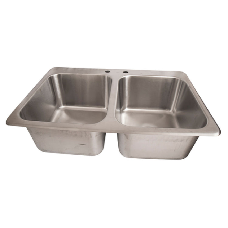 BK Resources DDI2-1416628 Deep Drawn Drop-In Sink Two Compartment 33"W X 22"D X 6"H Overall Size