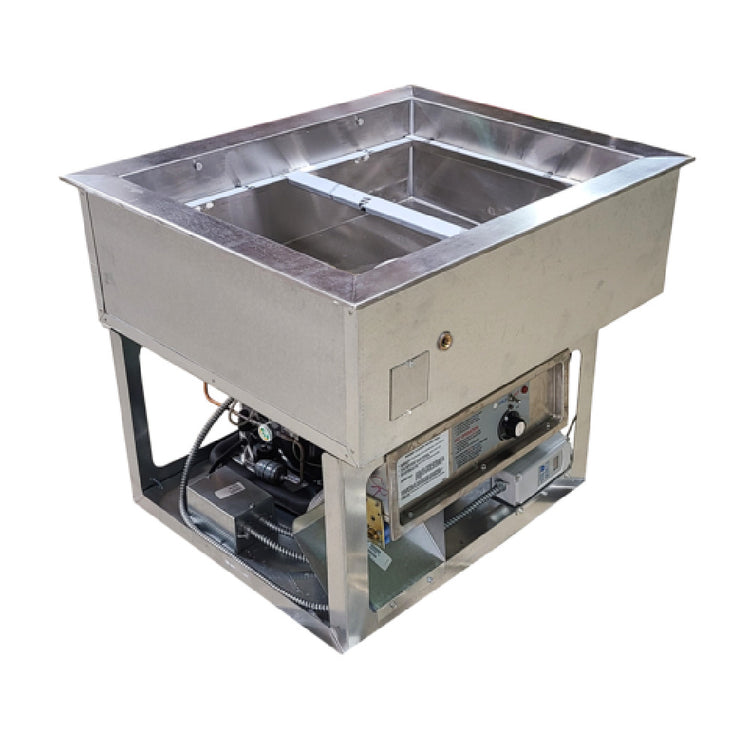 The BK Resources E-DT-2 Dual Temperature Drop-In Hot/Cold Food Well is a versatile unit designed to accommodate standard 12" x 20" food pans and fractional sized pans, making it a perfect choice for diverse culinary environments. This dual-temperature system features two wells and a 3-inch recessed top edge with coved corners, enhancing its functionality and ease of use. Constructed from durable 18-gauge stainless steel, this unit ensures longevity and resilience in high-demand settings. The cold temperature function utilizes 134A refrigerant and operates at 115v/60/1-ph with a power draw of 4.9 amps and a 1/4 HP capacity, ensuring efficient chilling. For hot applications, it operates at 208/240v/60/1-ph with a power requirement of 9.0/10.4 amps and a heating capacity of 1.9/2.5 HP, offering reliable heating performance. Both NSF and UL certifications highlight its adherence to safety and sanitation standards. This dual temperature food well is ideal for catering, buffets, and food service operations seeking flexible temperature control and the capacity to keep dishes at the desired serving temperatures. Its robust design and dual functionality make it a valuable asset in any professional kitchen environment.