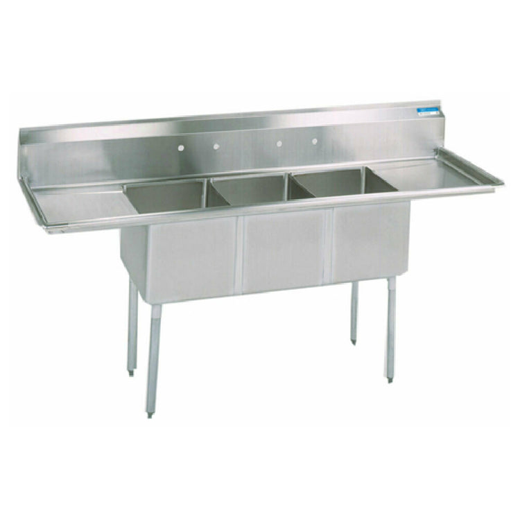 BK Resources ES-3-24-14-24T Economy Sink Three Compartment 120"W X 29-13/16"D X 43-3/4"H Overall Size