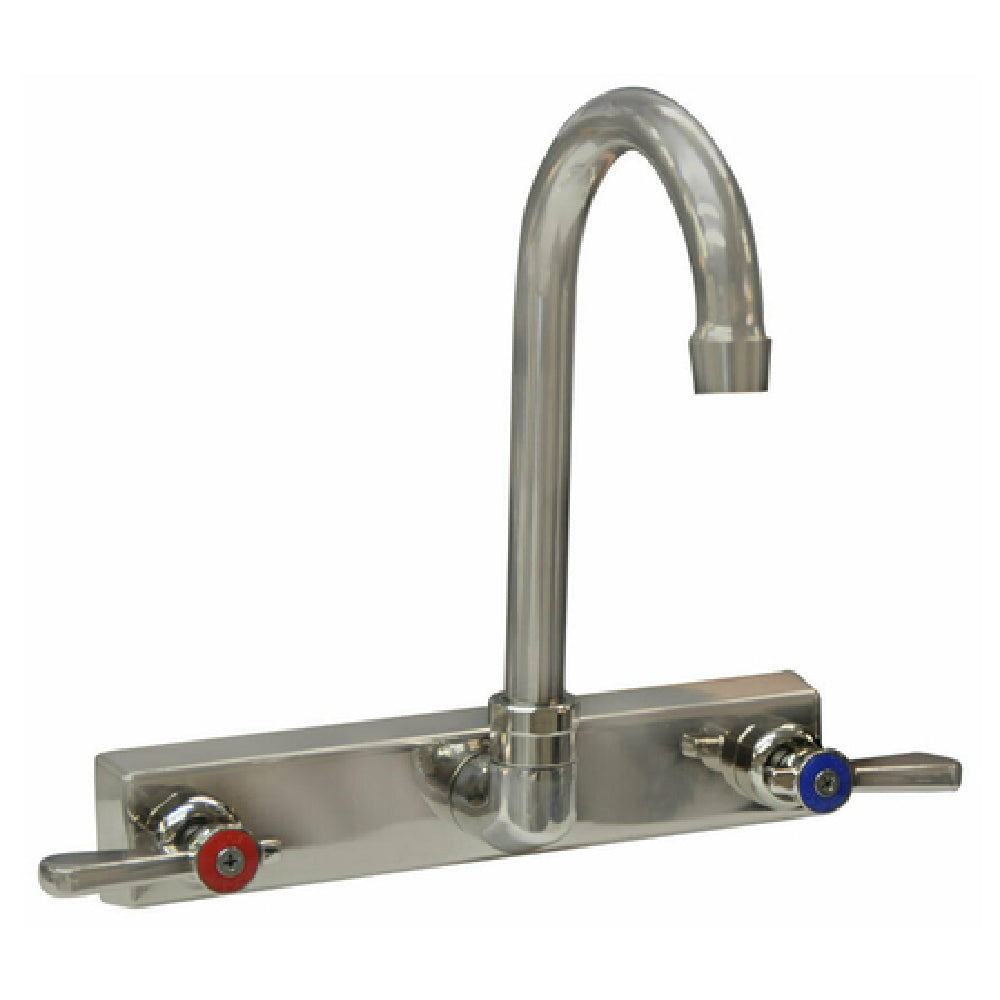 The BK Resources EVO-4SM-5G Evolution Faucet is a splash-mounted fixture designed with 4-inch centers, making it a versatile option for various commercial and industrial applications. It features a 5-inch gooseneck spout that ensures ease of use and efficient water flow. The faucet is equipped with quarter-turn ceramic cartridges, which provide durability and a smooth turning action for reliable performance. Additionally, the integral check valve serves to prevent backflow, ensuring a consistent and contamination-free water supply. Crafted from T-304 cast stainless steel, the faucet boasts superior corrosion resistance and longevity. A stainless steel cover adds an extra layer of durability. Importantly, this faucet is lead-free, aligning with safety standards for potable water systems. It is certified by NSF and cCSAus, guaranteeing its compliance with rigorous public health and safety benchmarks. Ideal for commercial kitchens, food service operations, and other professional environments, the BK Resources EVO-4SM-5G Evolution Faucet combines robust construction with essential features to meet the demands of high-traffic settings.