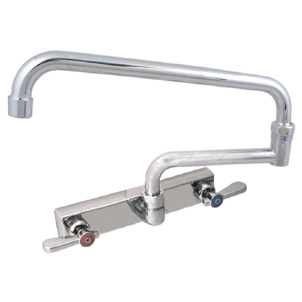 The BK Resources EVO-8SM-8G Evolution Faucet is a splash-mounted solution that expertly combines precision engineering with durable materials, making it suitable for various industrial and commercial applications. Featuring an 8-inch center design, this faucet is equipped with an 8-inch gooseneck spout, ensuring ample reach and flexibility for a wide range of tasks. It incorporates quarter-turn ceramic cartridges, which provide reliable and smooth operation, reducing maintenance needs and enhancing longevity. Constructed from T-304 cast stainless steel, the Evolution Faucet is robust and resistant to corrosion, promising long-lasting performance even in demanding environments. The integral check valve within the faucet is a critical feature that prevents backflow, maintaining water safety across different usage scenarios. Additionally, the stainless steel cover not only adds a layer of sleek protection but also aligns with NSF and cCSAus standards, signifying its compliance with health and safety regulations. The faucet's lead-free composition further underscores its commitment to providing a safe and environmentally friendly solution, appealing to sectors that prioritize sustainability. Whether in a busy commercial kitchen or an industrial setting, the BK Resources EVO-8SM-8G Evolution Faucet provides unmatched reliability and functionality.