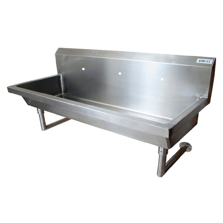 BK Resources MSHS-72W1 Three Station Handwash Sink Wall Mounted (3) Single Hole Splash Mount Faucet Holes