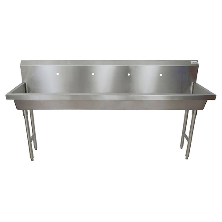 BK Resources MSHS-96F1 Four Station Handwash Sink Freestanding (4) Single Hole Splash Mount Faucet Holes